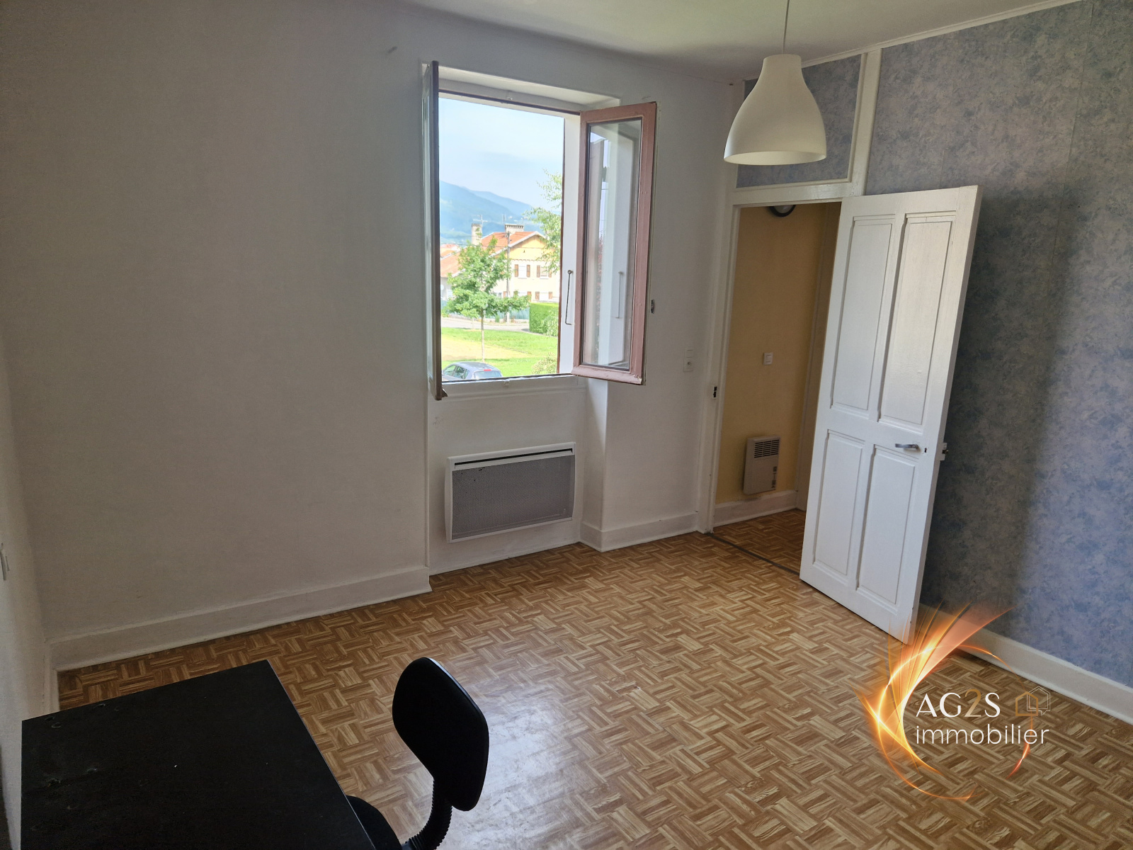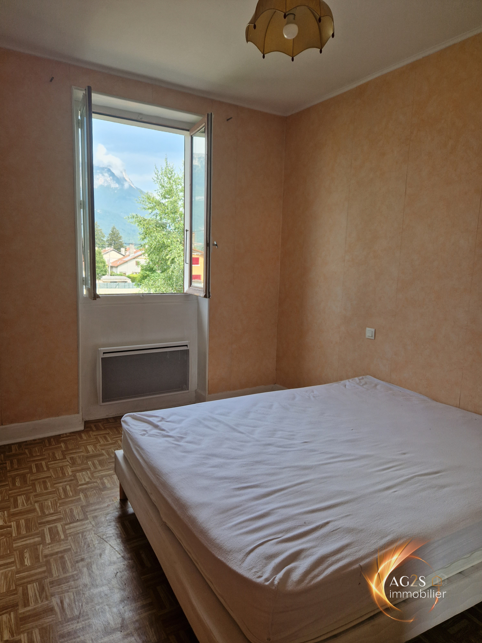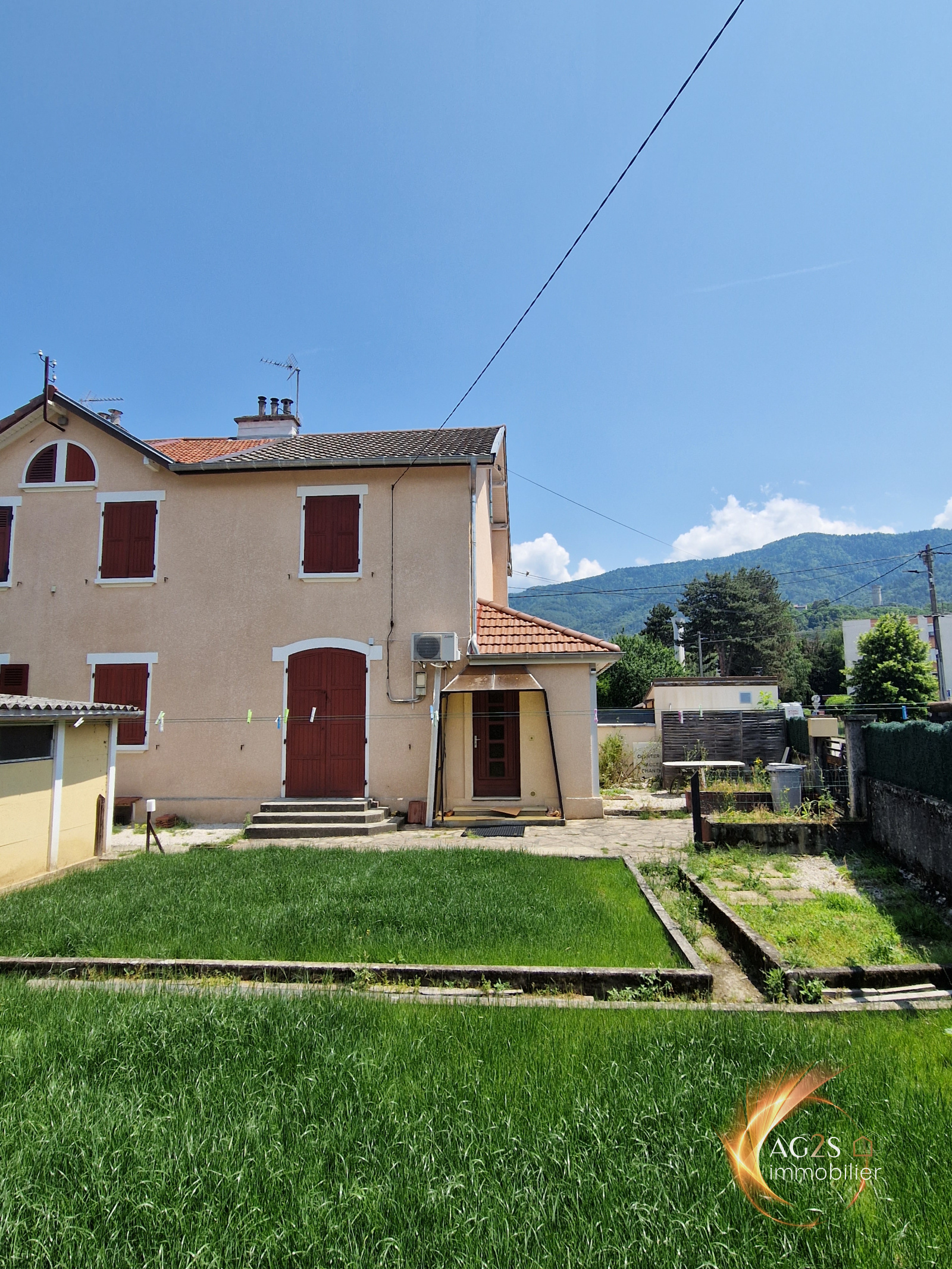 Jolie maison mitoyenne de 63m² à deux pas du centre et de ses commodités.Située au calme, elle se compose d'une kitchinette, un séjour avec agréable vue sur Chartreuse, salle à manger (ou chambre au rdc) et salle d'eau; A l'étage, 2 grandes chambres de 12 et 15m² bénéficient d'une vue dégagée.