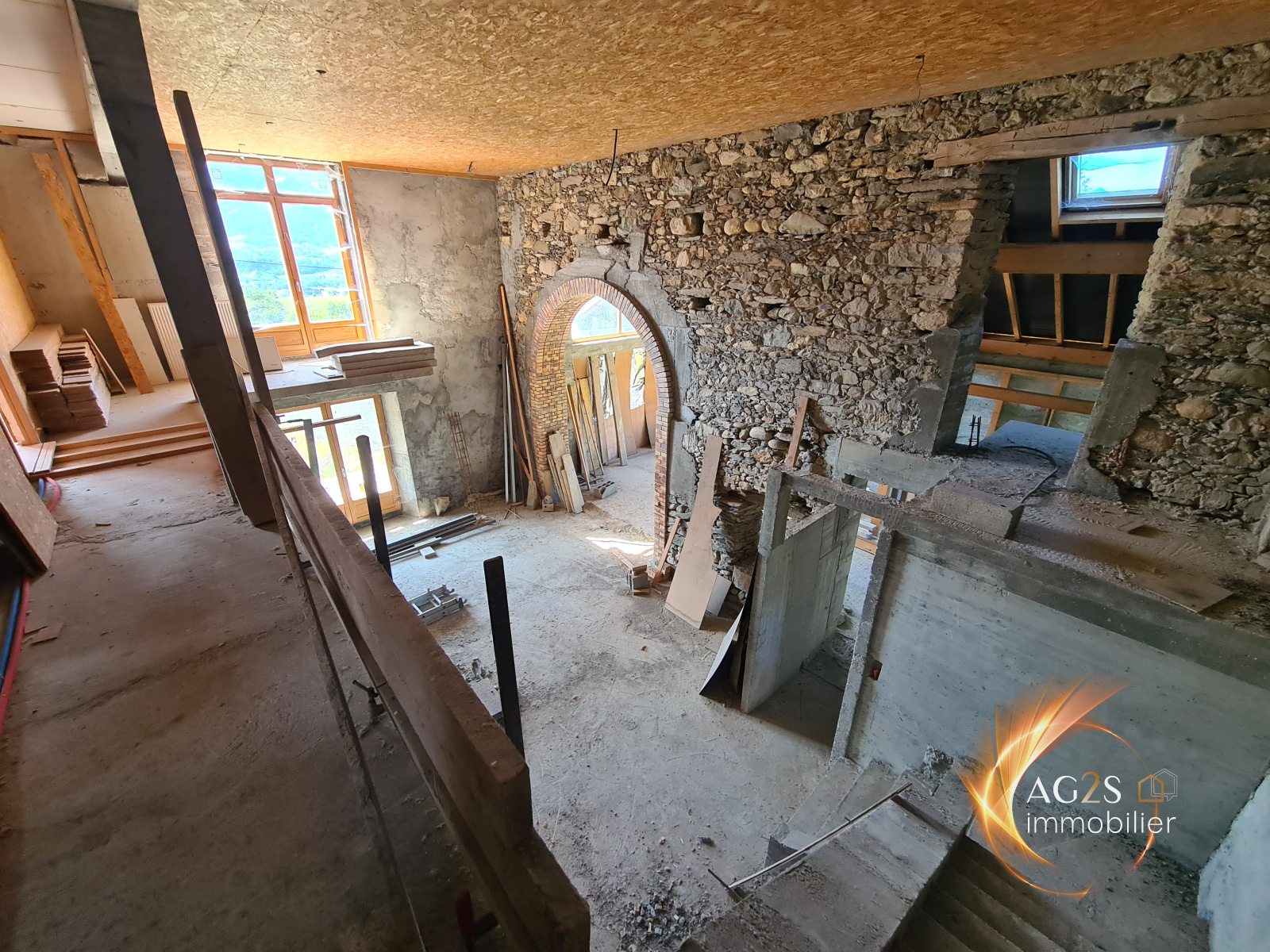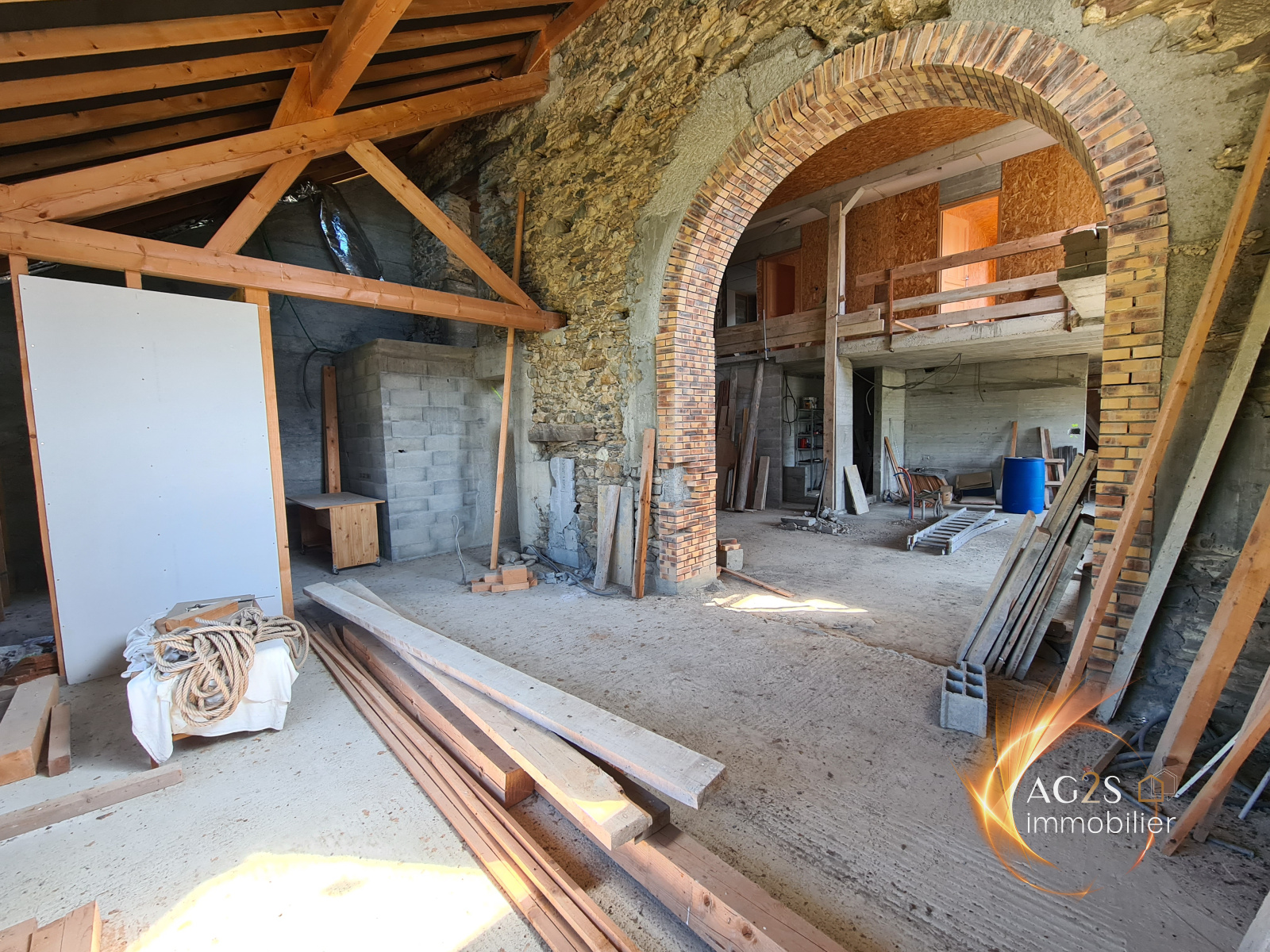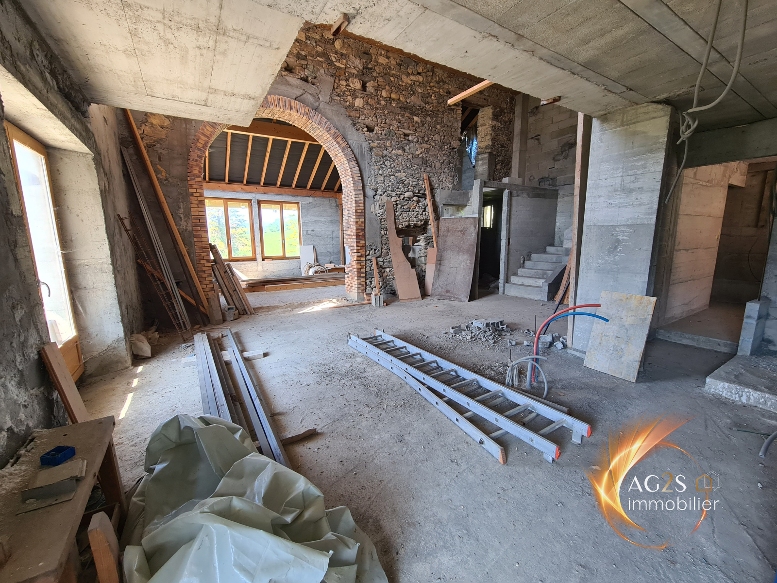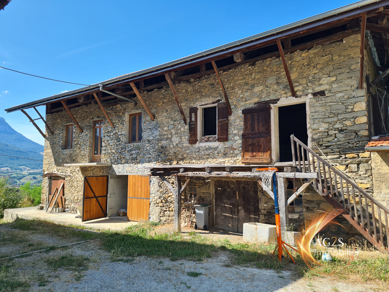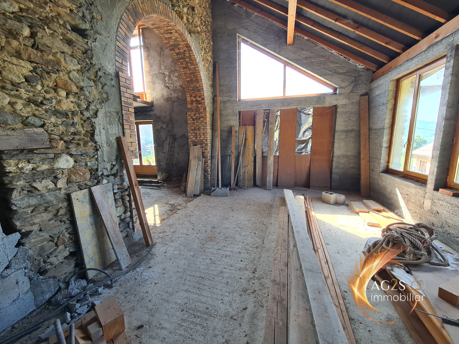 Hauteurs de Pontcharra, sur une parcelle de terrain à la vue dominante d'environ 1500 m², joli corps de ferme en cours de réhabilitation. Vous serez séduits par ses volumes, ses perspectives d'aménagement et le cachet de cette batisse. Vaste pièce de vie baignée de lumière avec superbe hauteur sous plafond. Il était prévu un aménagement comprenant une cuisine ouverte sur séjour, une chambre en rez-de-chaussée, une buanderie, une chaufferie. A l'étage, 2 chambres et une salle de bains. Grand sous sol pour y stationner deux véhicules voir camping car. Le toit a été fait en 2016. A viabiliser. Raccordement à l'égout possible. Beaucoup de travaux reste à réaliser. wwwag2s-immobilier.fr