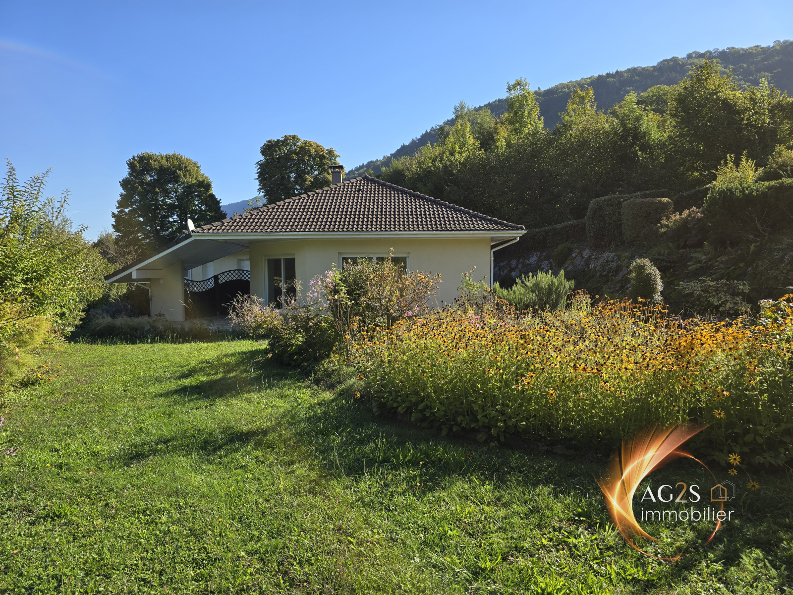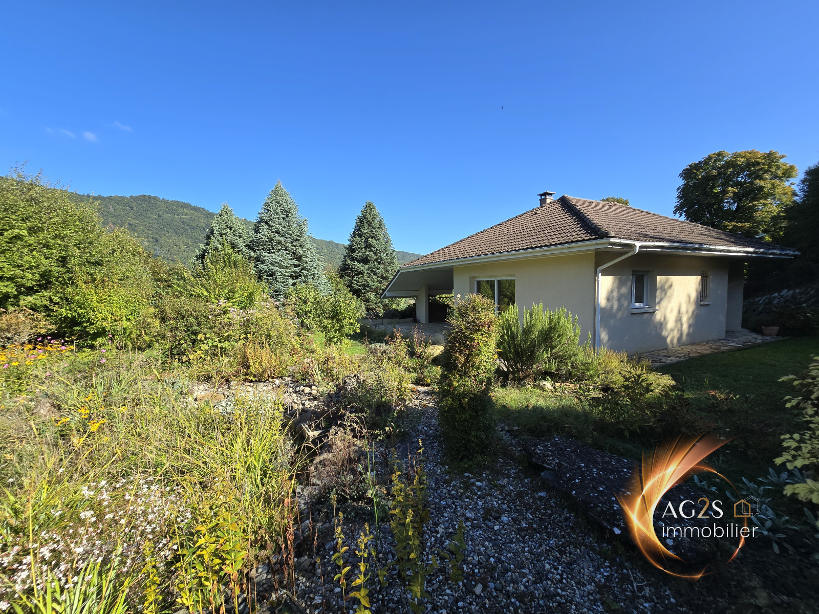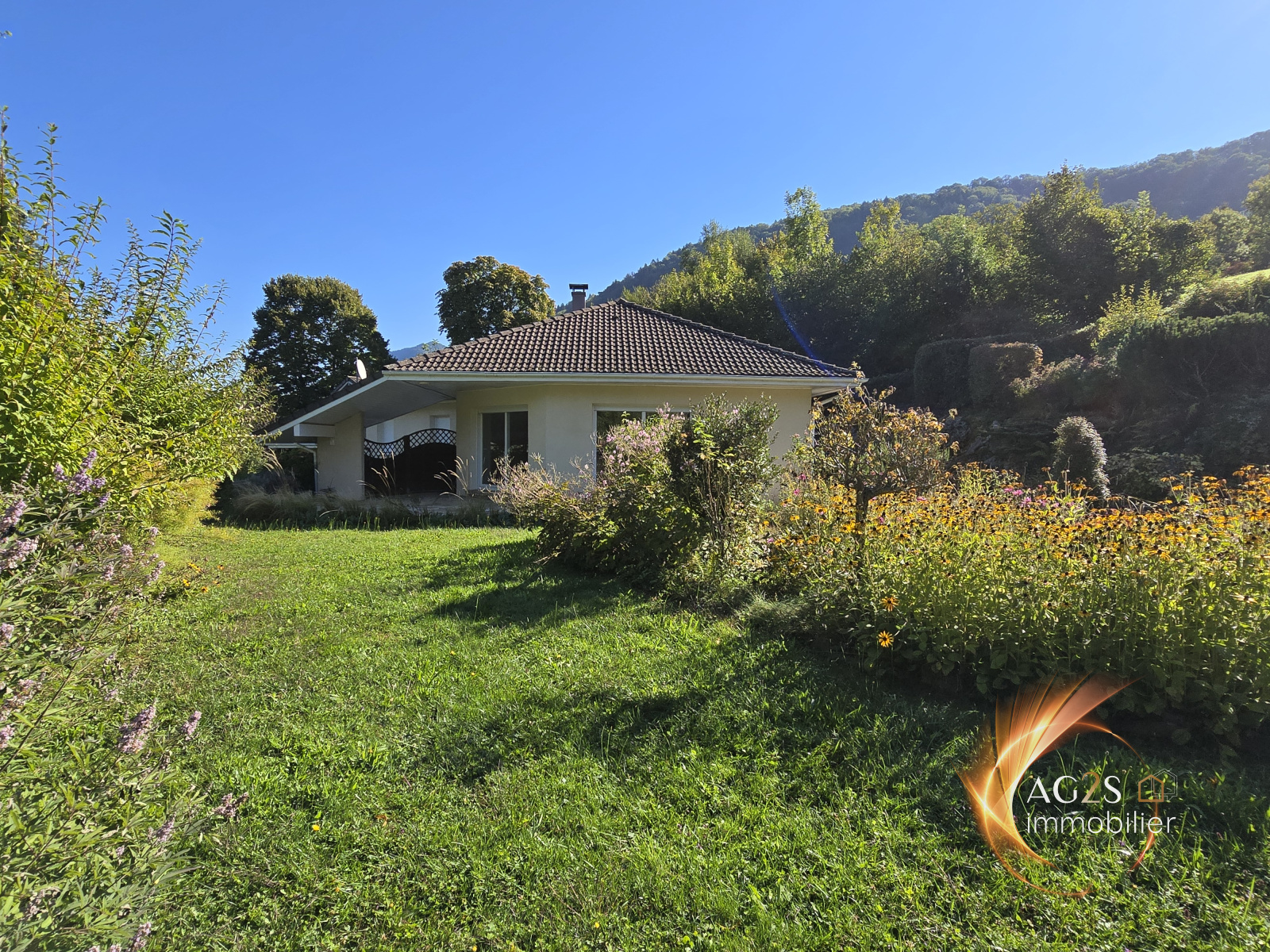 ACTUELLEMENT SOUS OFFRE D'ACHAT ! Vous serez forcément séduits par le cadre apaisant de cette villa de plain pied. Sur une parcelle superbement arborée d'une surface de 2382 m², le charme de ce terrain paysagé ne vous laissera pas indifférent. Sa maison de plain pied se compose d'une très belle pièce de vie de 53 m² baignée de lumière ouverte sur une belle terrasse couverte et ce magnifique terrain bucolique. Agrémentée d'une cheminée centrale, cette pièce se compose d'une cuisine ouverte sur le salon salle à manger et laisse place a une convivialité certaine. La maison se compose de plain pied d'une arrière cuisine, 3 chambres, , une vaste salle de bains avec douche balnéo, une buanderie et l'accès a une 4ème chambre aménagée dans les combles. Elle bénéficie d'un grand garage double de 45 m² et d'un sous sol complet offrant différents espaces fonctionnels. Vous l'aurez compris, cette maison pleine de charme vous offrira un confort de vie dans un cadre apaisant vous permettant de vous évader. Un petit chalet de 20 m² est aménagé au beau milieu de ce petit paradis vous permettant d'accueillir un couchage supplémentaire et de stocker votre materiel de jardinage. Cerise sur le gateau, une rivière coule au fond du jardin ;-) www.ag2s-immobilier.fr